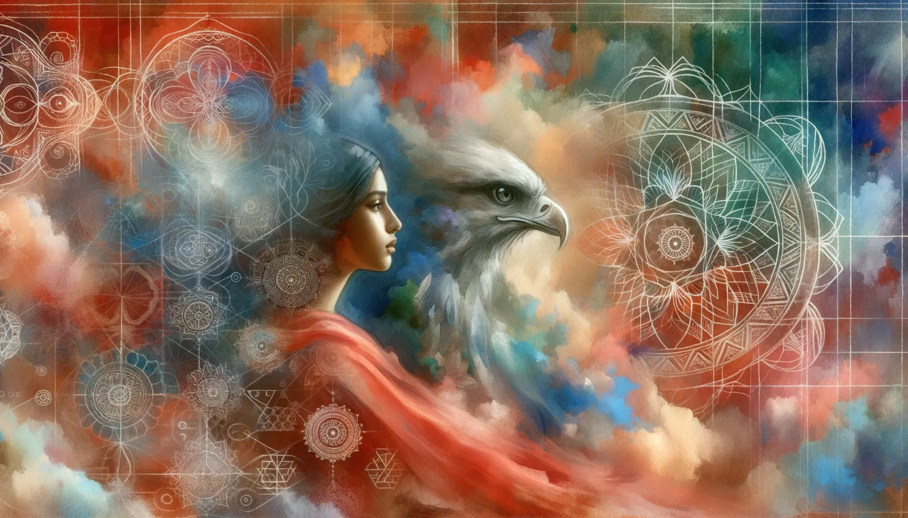 Prompt: I see an Indian girl wearing a sari with the face of an eagle.