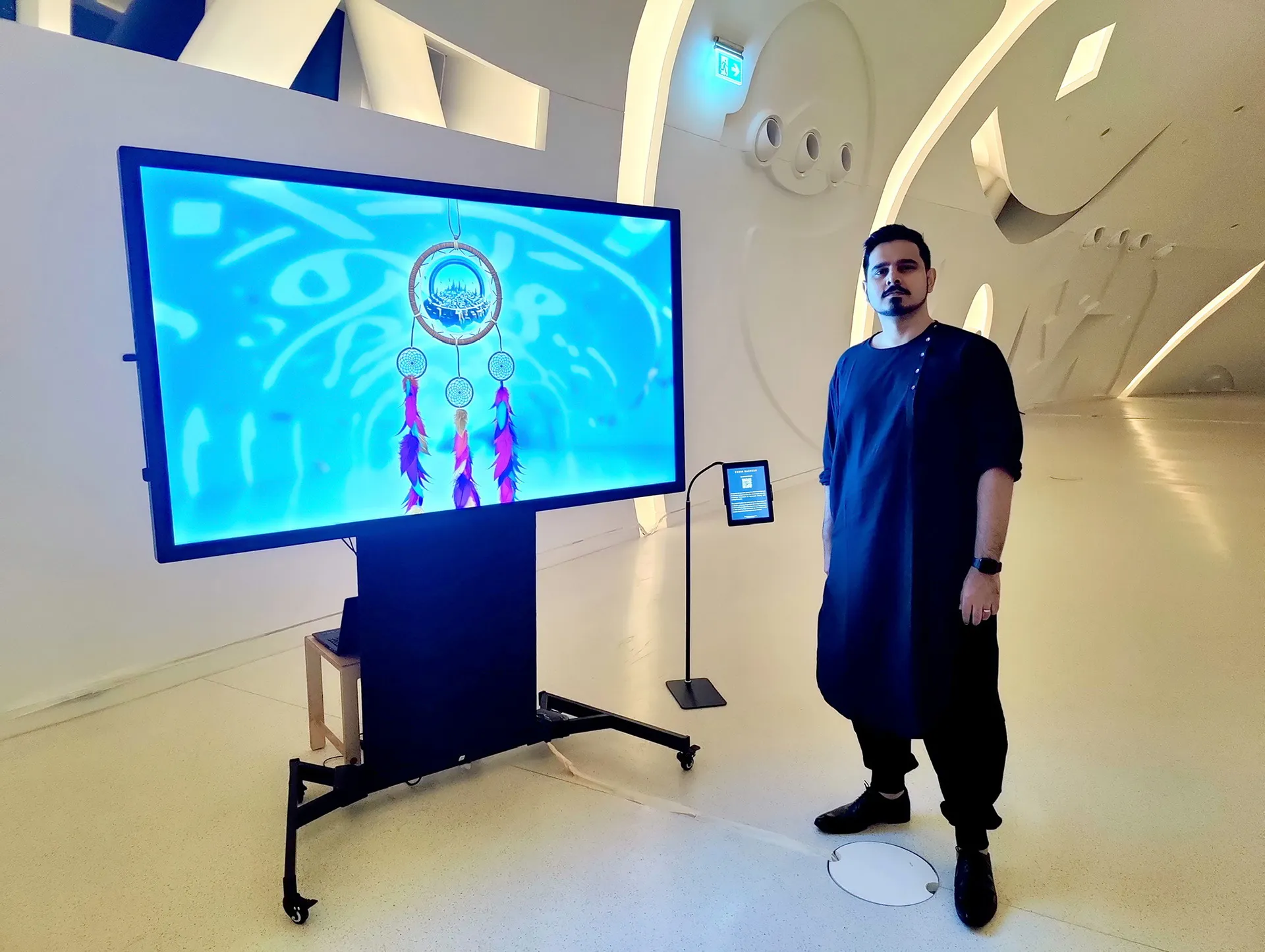 The NFT of the dreamcatcher was airdropped to the collector of the 1/1 NFT of the key image of the Numaverse project which went into auction as part of the exhibition. The link to the dreamcatcher NFT is: