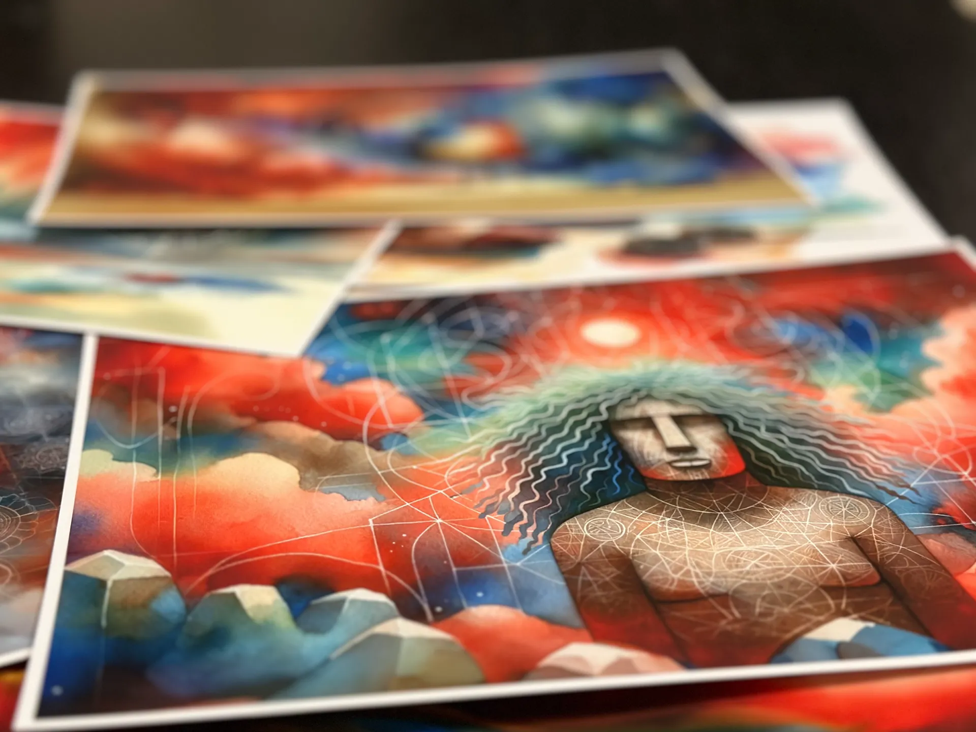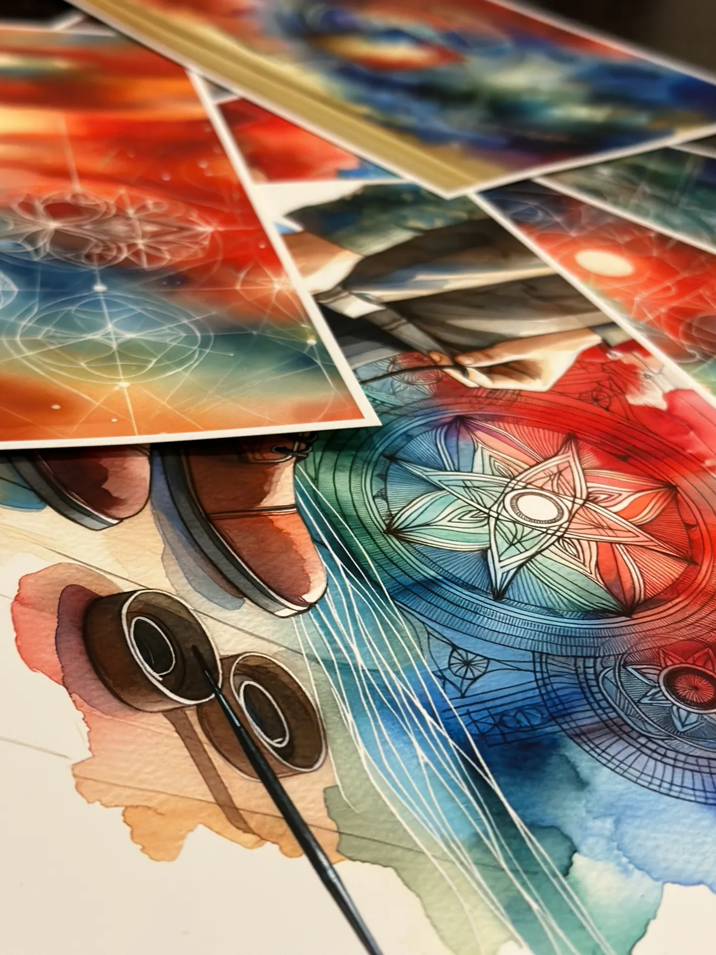During the meditation, I wore an EEG device which translated my brainwaves into my computer which then created the sculpture. My brainwaves generated the feathers of the sculpture. Specifically the colour and size of the feathers were determined by the brainwaves. During the meditation, I also fetched an image from the subconscious. After the meditation I then queried in a prompt into an image generation AI model to generate a digital image corresponding to what I saw in the hypnagogic state. During the exhibition, what I saw in the deep states was a "city with a circle around it". The generated image was this: